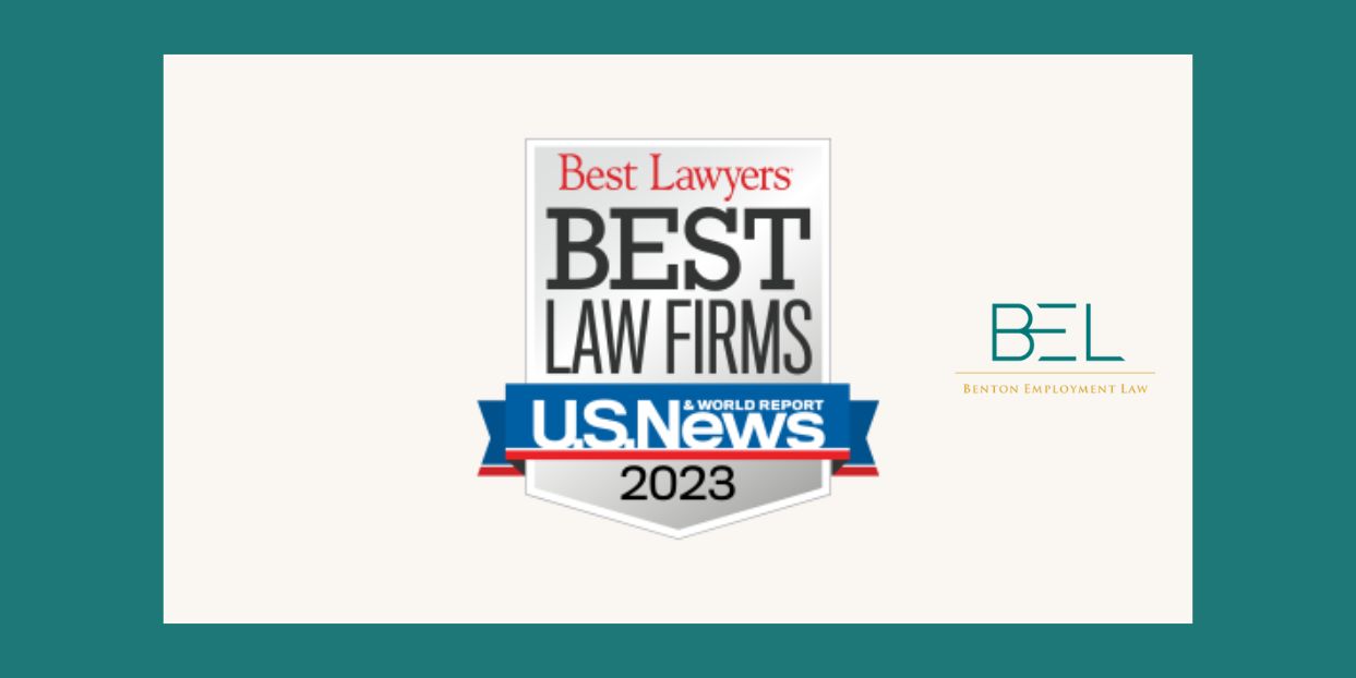 Benton Employment Law, PC has been named a 2023 “Best Law Firm” by U.S. News – Best Lawyers®. Firms receiving this distinction are recognized for their excellence in legal practice and consistent success on behalf of their clients. Honorees are chosen as leaders by millions of ratings from clients and peers. The 2023 rankings are based on over 12 million evaluations of thousands of lawyers and firms nationwide.